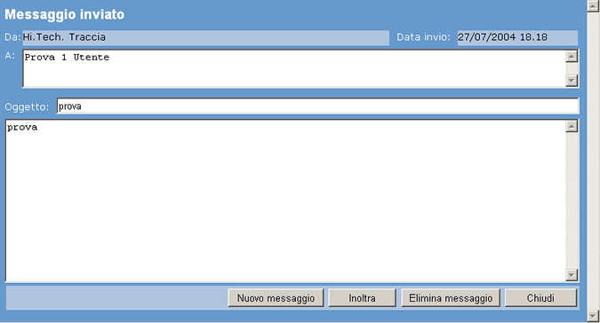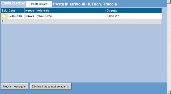 Il pulsante Invia consente di inviare il messaggio; questa operazione chiude il messaggio appena creato portando automaticamente l'utente alla pagina della posta inviata. La presenza di eventuali nuovi messaggi viene notificata agli utenti nel momento in cui questi accedono alla pagina principale del sito o alla pagina della casella di posta.